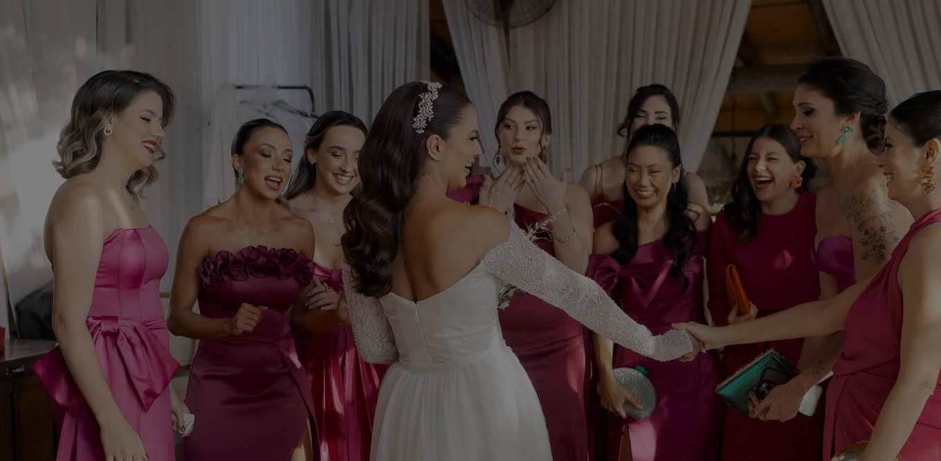 Trabalhamos em formato de consultoria e experimentamos diferentes modelos, para você estar confiante da melhor escolha, o seu vestido!